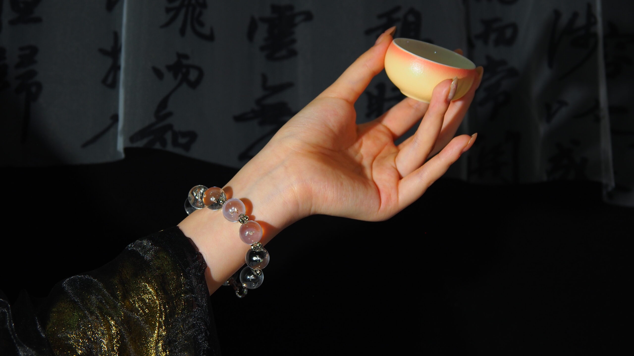 地底深处先形成纯净的水晶原石,在地壳运动的挤压与震动下,晶体内产生细微裂隙。随后,富含铁、锰等矿物质的地热溶液渗入裂缝之中,矿物质慢慢沉淀、凝结,形成如花瓣、云雾般的纹理色彩。
